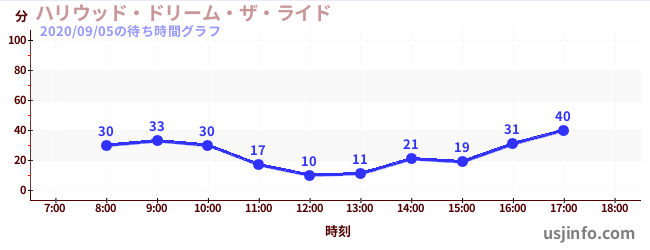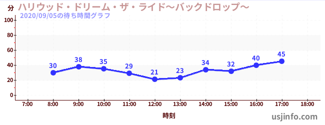 • ハリウッド・ドリーム・ザ・ライド〜バックドロップ〜$B$N(B2020年09月05日の待ち時間
