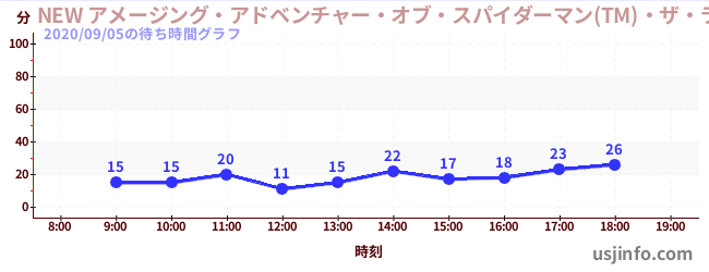 • NEW アメージング・アドベンチャー・オブ・スパイダーマン(TM)・ザ・ライド 4K3D$B$N(B2020年09月05日の待ち時間