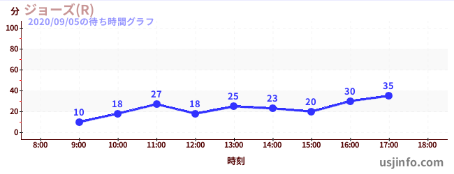• ジョーズ(R)$B$N(B2020年09月05日の待ち時間