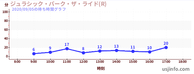 • ジュラシック・パーク・ザ・ライド(R)$B$N(B2020年09月05日の待ち時間