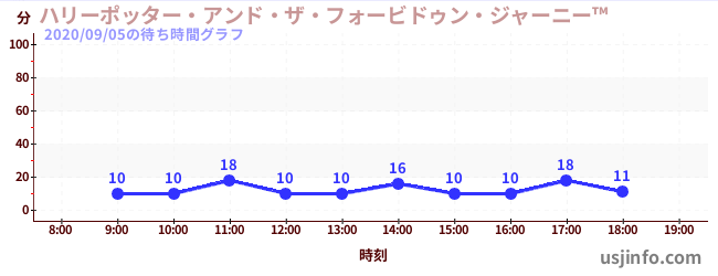• ハリーポッター・アンド・ザ・フォービドゥン・ジャーニー™$B$N(B2020年09月05日の待ち時間