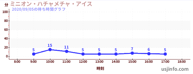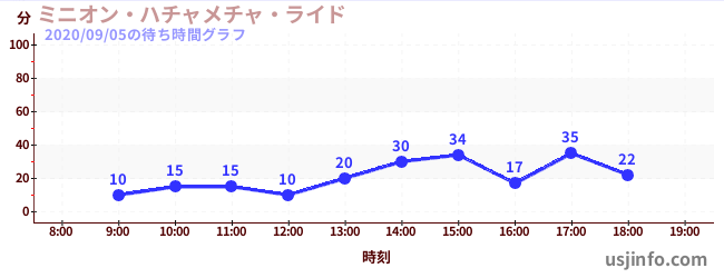 • ミニオン・ハチャメチャ・ライド$B$N(B2020年09月05日の待ち時間