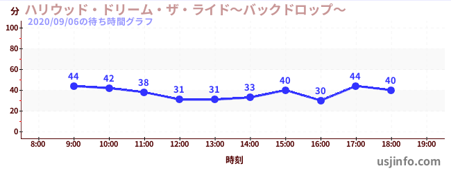 • ハリウッド・ドリーム・ザ・ライド〜バックドロップ〜$B$N(B2020年09月06日の待ち時間