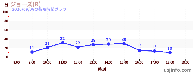 • ジョーズ(R)$B$N(B2020年09月06日の待ち時間