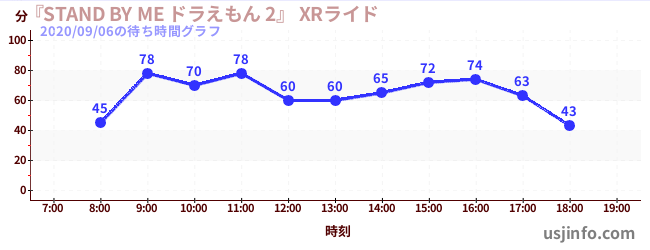 • 『STAND BY ME ドラえもん 2』 XRライド$B$N(B2020年09月06日の待ち時間