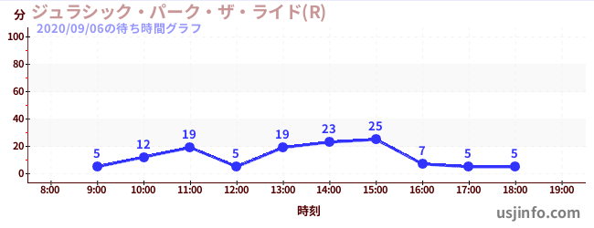 • ジュラシック・パーク・ザ・ライド(R)$B$N(B2020年09月06日の待ち時間