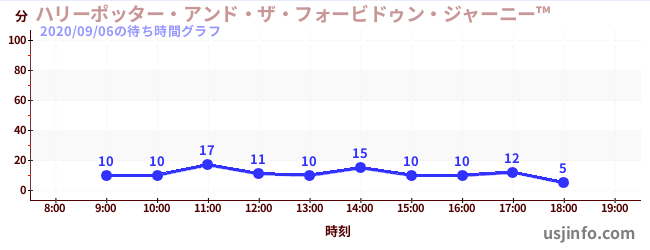 • ハリーポッター・アンド・ザ・フォービドゥン・ジャーニー™$B$N(B2020年09月06日の待ち時間