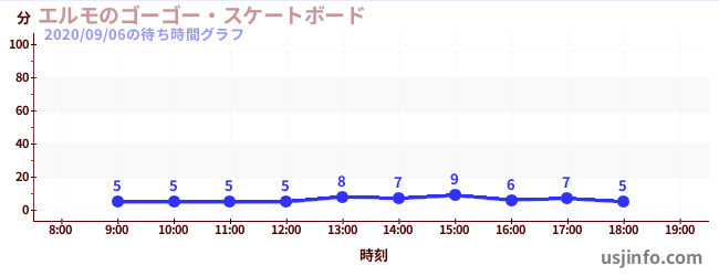 • エルモのゴーゴー・スケートボード$B$N(B2020年09月06日の待ち時間