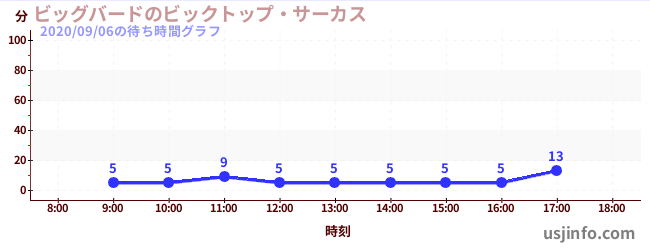 • ビッグバードのビックトップ・サーカス$B$N(B2020年09月06日の待ち時間
