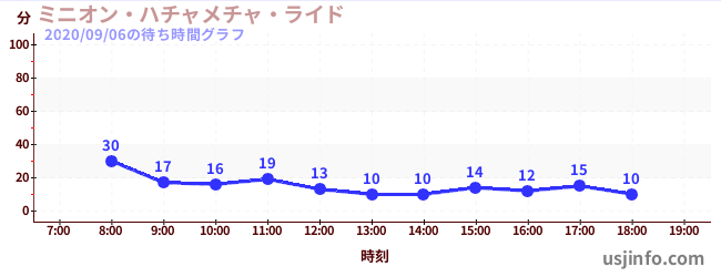 • ミニオン・ハチャメチャ・ライド$B$N(B2020年09月06日の待ち時間