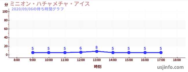 • ミニオン・ハチャメチャ・アイス$B$N(B2020年09月06日の待ち時間