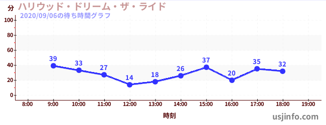 • ハリウッド・ドリーム・ザ・ライド$B$N(B2020年09月06日の待ち時間