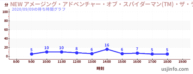 • NEW アメージング・アドベンチャー・オブ・スパイダーマン(TM)・ザ・ライド 4K3D$B$N(B2020年09月09日の待ち時間