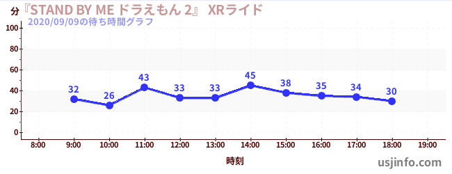 • 『STAND BY ME ドラえもん 2』 XRライド$B$N(B2020年09月09日の待ち時間