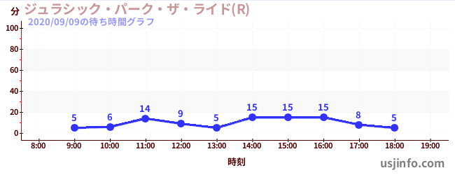 • ジュラシック・パーク・ザ・ライド(R)$B$N(B2020年09月09日の待ち時間