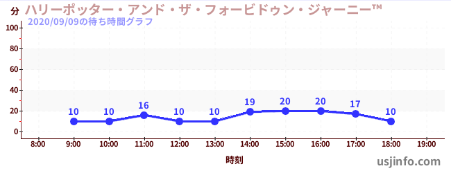 • ハリーポッター・アンド・ザ・フォービドゥン・ジャーニー™$B$N(B2020年09月09日の待ち時間