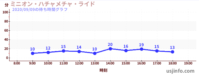 • ミニオン・ハチャメチャ・ライド$B$N(B2020年09月09日の待ち時間
