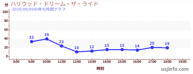 • ハリウッド・ドリーム・ザ・ライド$B$N(B2020年09月09日の待ち時間