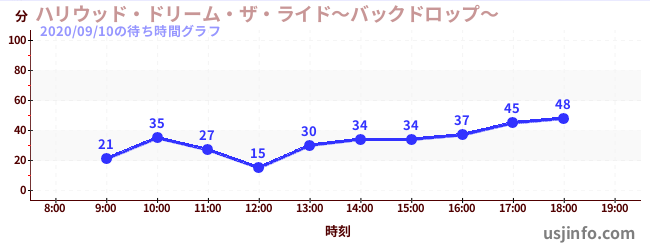 • ハリウッド・ドリーム・ザ・ライド〜バックドロップ〜$B$N(B2020年09月10日の待ち時間