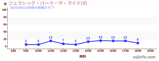 • ジュラシック・パーク・ザ・ライド(R)$B$N(B2020年09月10日の待ち時間