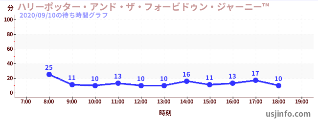 • ハリーポッター・アンド・ザ・フォービドゥン・ジャーニー™$B$N(B2020年09月10日の待ち時間