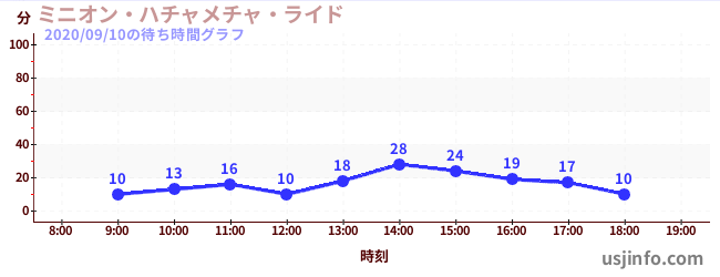 • ミニオン・ハチャメチャ・ライド$B$N(B2020年09月10日の待ち時間