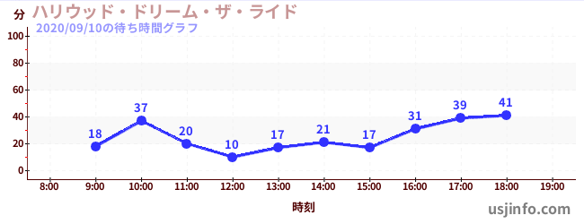 • ハリウッド・ドリーム・ザ・ライド$B$N(B2020年09月10日の待ち時間