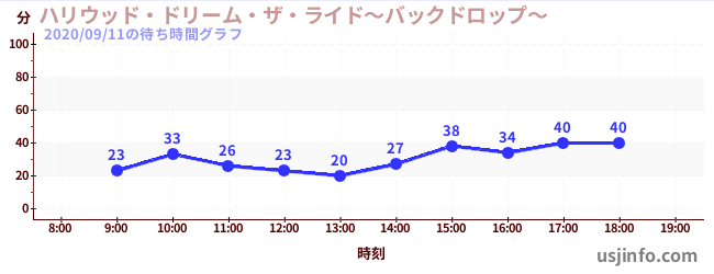 • ハリウッド・ドリーム・ザ・ライド〜バックドロップ〜$B$N(B2020年09月11日の待ち時間