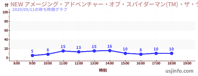 • NEW アメージング・アドベンチャー・オブ・スパイダーマン(TM)・ザ・ライド 4K3D$B$N(B2020年09月11日の待ち時間