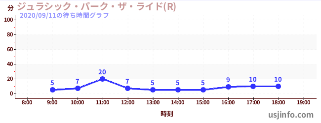 • ジュラシック・パーク・ザ・ライド(R)$B$N(B2020年09月11日の待ち時間