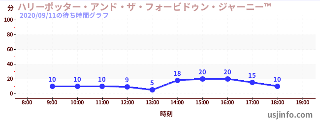 • ハリーポッター・アンド・ザ・フォービドゥン・ジャーニー™$B$N(B2020年09月11日の待ち時間