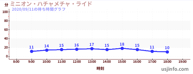 • ミニオン・ハチャメチャ・ライド$B$N(B2020年09月11日の待ち時間
