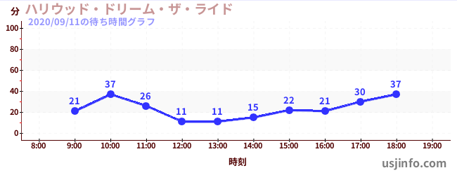 • ハリウッド・ドリーム・ザ・ライド$B$N(B2020年09月11日の待ち時間