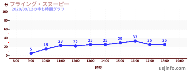 • フライング・スヌーピー$B$N(B2020年09月12日の待ち時間