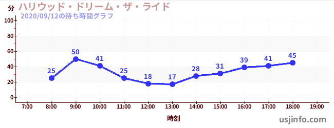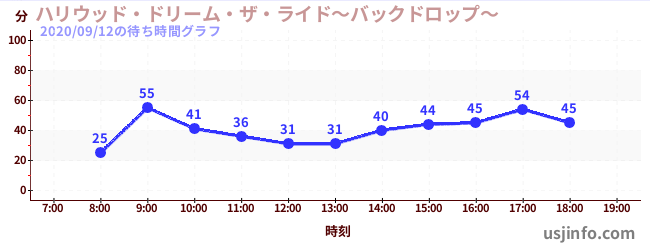 • ハリウッド・ドリーム・ザ・ライド〜バックドロップ〜$B$N(B2020年09月12日の待ち時間