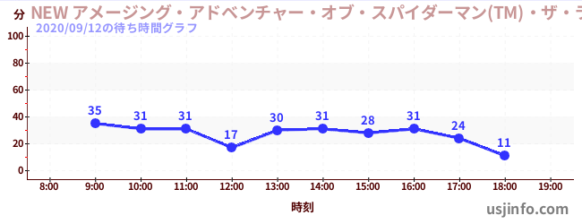 • NEW アメージング・アドベンチャー・オブ・スパイダーマン(TM)・ザ・ライド 4K3D$B$N(B2020年09月12日の待ち時間