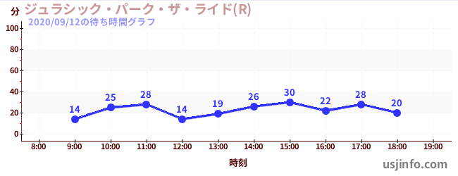 • ジュラシック・パーク・ザ・ライド(R)$B$N(B2020年09月12日の待ち時間