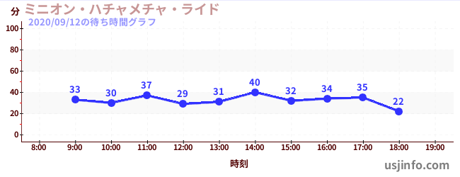 • ミニオン・ハチャメチャ・ライド$B$N(B2020年09月12日の待ち時間