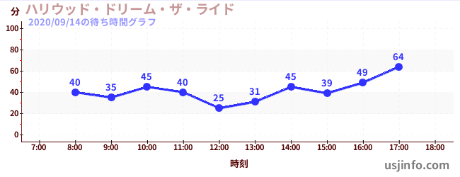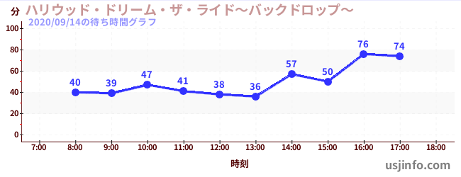 • ハリウッド・ドリーム・ザ・ライド〜バックドロップ〜$B$N(B2020年09月14日の待ち時間
