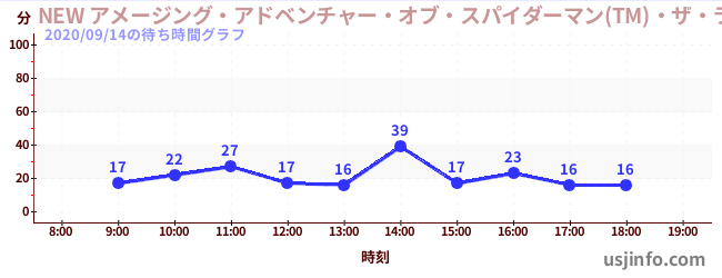 • NEW アメージング・アドベンチャー・オブ・スパイダーマン(TM)・ザ・ライド 4K3D$B$N(B2020年09月14日の待ち時間