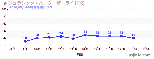 • ジュラシック・パーク・ザ・ライド(R)$B$N(B2020年09月14日の待ち時間