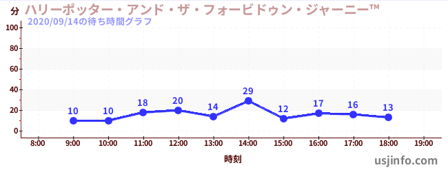 • ハリーポッター・アンド・ザ・フォービドゥン・ジャーニー™$B$N(B2020年09月14日の待ち時間