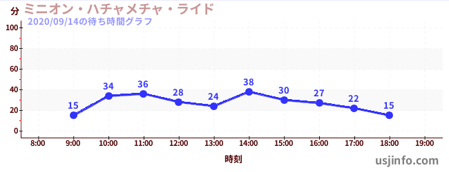 • ミニオン・ハチャメチャ・ライド$B$N(B2020年09月14日の待ち時間