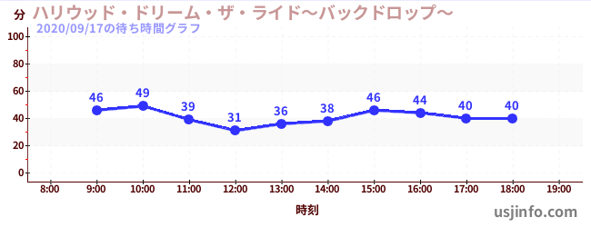 • ハリウッド・ドリーム・ザ・ライド〜バックドロップ〜$B$N(B2020年09月17日の待ち時間