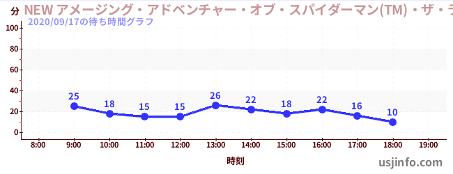 • NEW アメージング・アドベンチャー・オブ・スパイダーマン(TM)・ザ・ライド 4K3D$B$N(B2020年09月17日の待ち時間