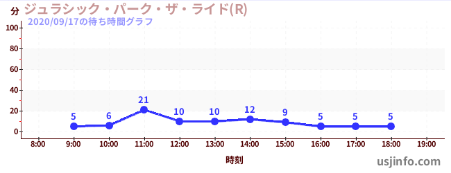 • ジュラシック・パーク・ザ・ライド(R)$B$N(B2020年09月17日の待ち時間