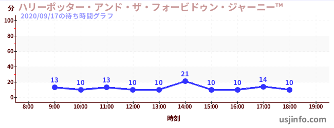 • ハリーポッター・アンド・ザ・フォービドゥン・ジャーニー™$B$N(B2020年09月17日の待ち時間