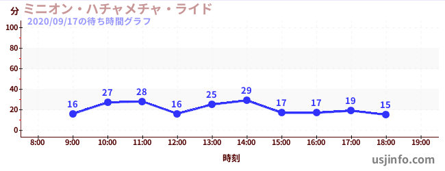 • ミニオン・ハチャメチャ・ライド$B$N(B2020年09月17日の待ち時間