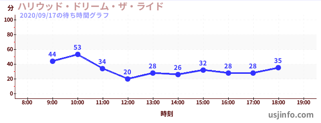 • ハリウッド・ドリーム・ザ・ライド$B$N(B2020年09月17日の待ち時間