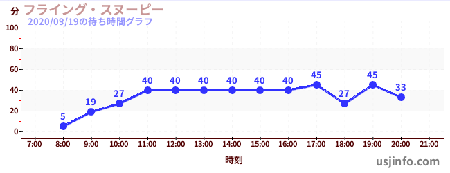 • フライング・スヌーピー$B$N(B2020年09月19日の待ち時間
